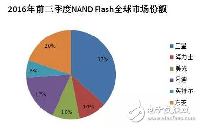 而在NAND Flash市场,DRAMeXchange的数据显示,三星、东芝、闪迪、海力士、美光和英特尔几乎垄断了全球100%的市场。尤其是三星和海力士,合计占了全球几乎一半的份额。